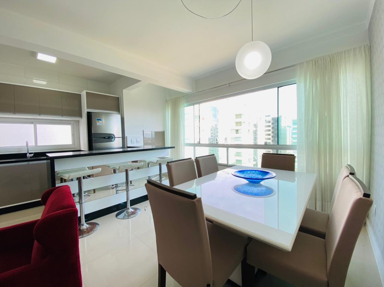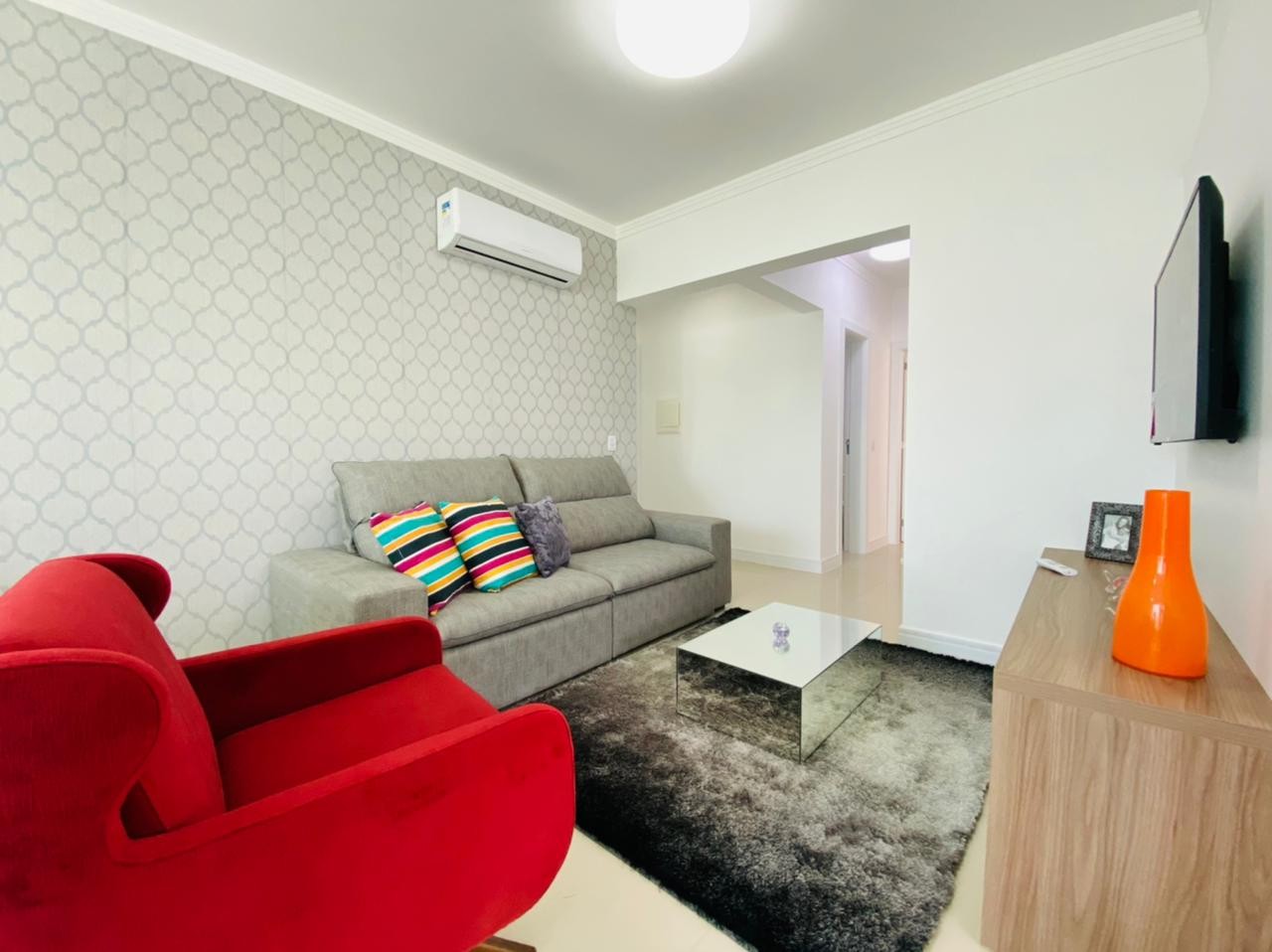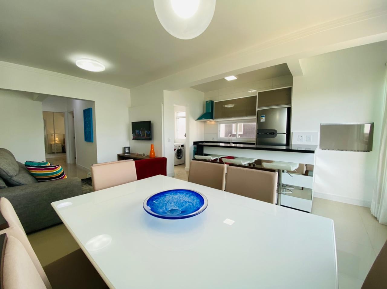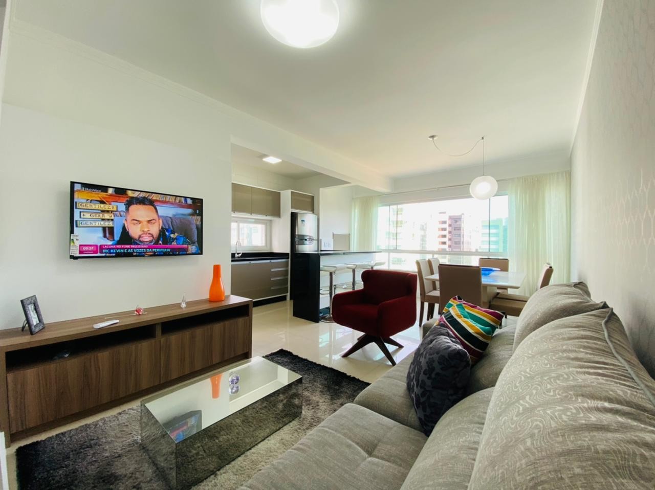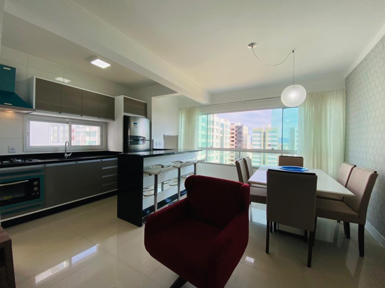 Composto por dois dormitórios sendo uma suíte, mobiliado, banheiro social, living em dois ambientes com sacada integrada, churrasqueira, cozinha americana, área de serviço individual, espera para ar Split, piso porcelanato polido, rebaixamento em gesso, água quente e gás Central. Prédio novo, revestido em plaquetas, Hall de entrada, dois elevadores e zeladoria permanente. Frente praça ficando a duas quadras do mar, muito bem localizado. Proprietário estuda parcelamento direto, receber carro e estuda proposta a vista.