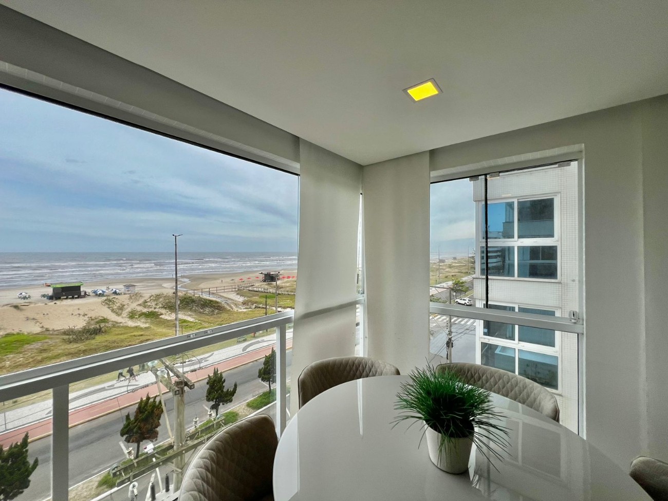 De frente para o Mar, lindo apartamento composto por 3 dormitórios ( sendo 01 suíte), cozinha americana, área de serviço, living com 3 ambientes, sacada com churrasqueira, lavabo e vista eterna para o Mar. Empreendimento novo e de alto padrão, com infraestrutura de lazer (piscina, solarium, salão de festas e academia), 2 elevadores digitais, zeladoria permanente, todos os apartamentos são compostos por espera para água quente, gás central, hidrômetro individual, espera para split, porcelanato polido e rebaixo em gesso, hall de entrada decorado e localizado no Centro, ao lado da Praça do Farol, agende uma visita e surpreenda-se.